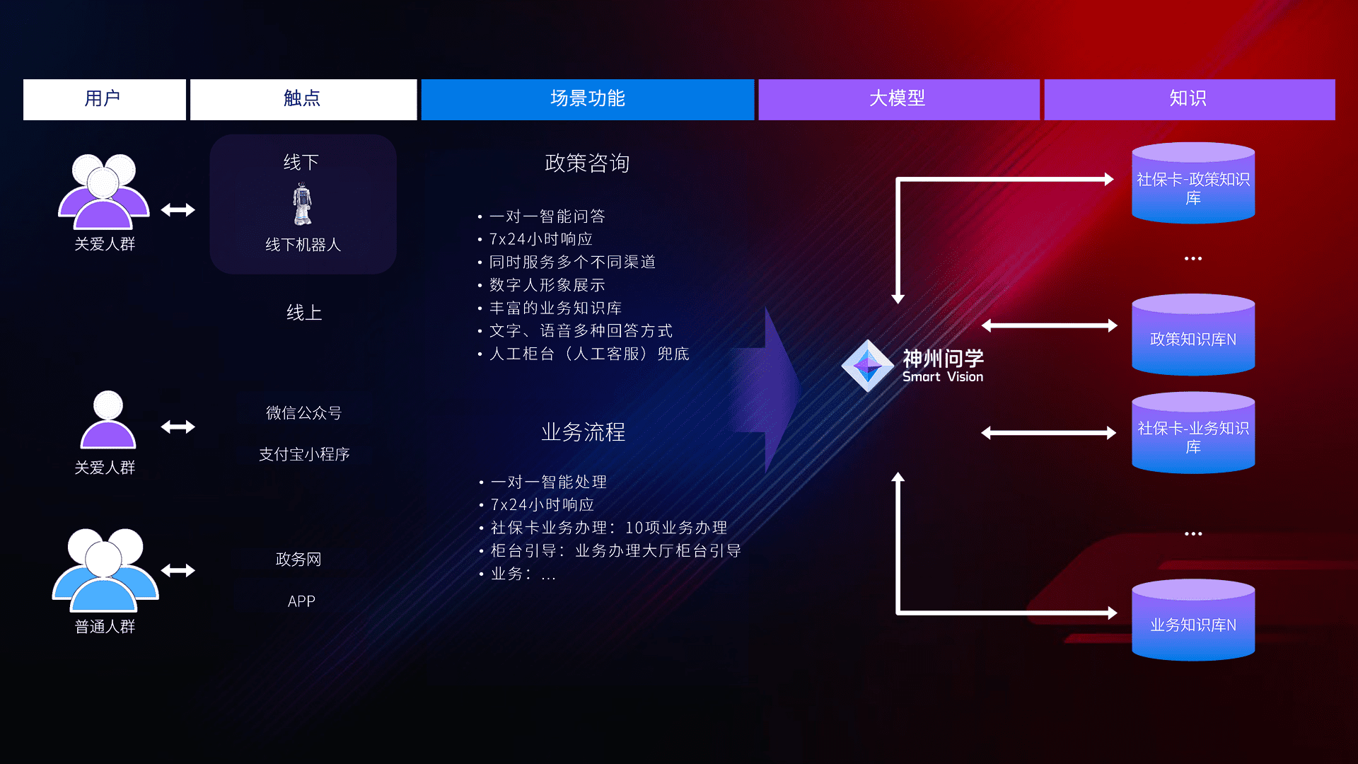 • 线上线下全覆盖:线上提供微信公众号、、支付宝小程序、、政务网、、app多种渠道,,,,与线下机器人形成完整服务体系。。。。